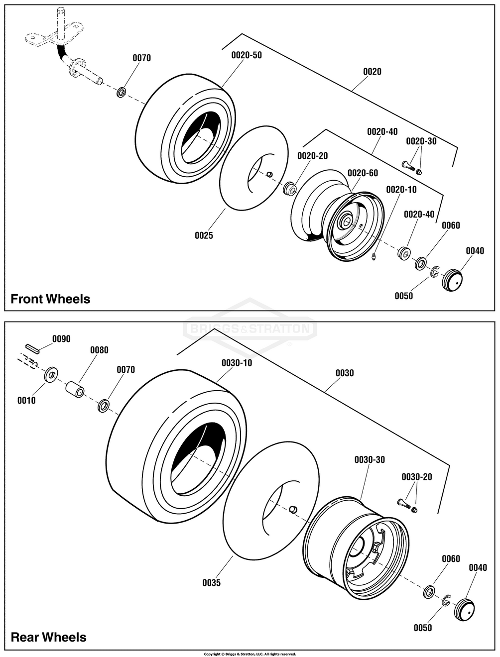 Hier finden Sie alle Ersatzteile von Snapper 2691044 - ELT175420, 42" 17.5 HP Hydro Drive Euro Tractor der Zeichnungsgruppe Wheels & Tires Group: