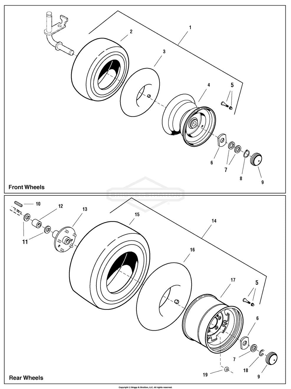 Zeichnung Snapper 2690505 - YT2344, 44" 23 HP Hydro Drive Yard Tractor Euro YT400 Series aus der Zeichnungsgruppe Wheels & Tires Group: