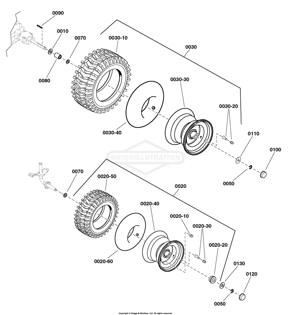 Hier finden Sie alle Ersatzteile von Snapper 2691703-00 - SPX275, 48" (122cm) 23 HP SPX Lawn Tractor 200 Series der Zeichnungsgruppe Wheels & Tires: