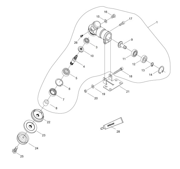 Zeichnung von shindaiwa Motorsensen T-Serie,Motorsensen mit Rundgriff T242XS Winkelgetriebe: