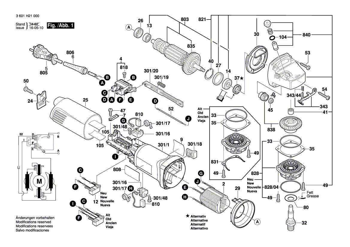 Zeichnungen von Bosch Winkelschleifer GWS 1000 mit der Geräte-Artikelnummer 3 601 H21 003