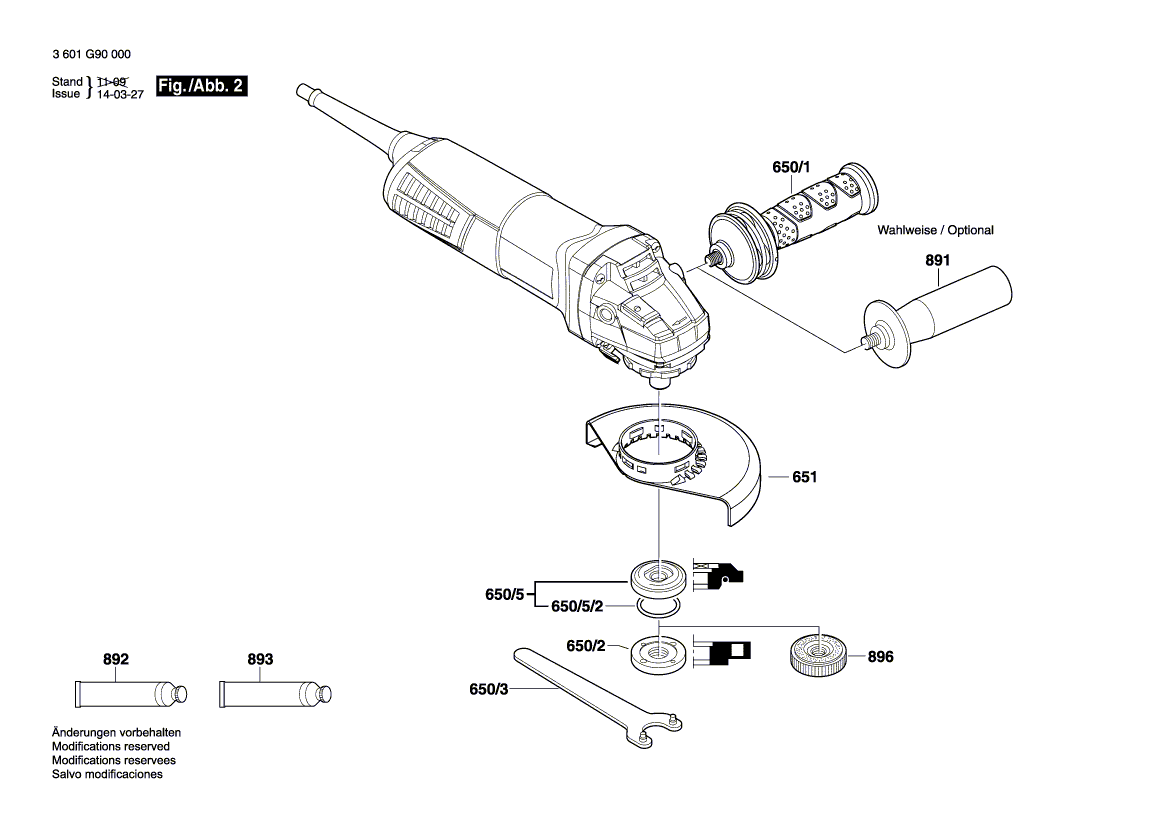 Zeichnungen von Bosch Winkelschleifer GWS 11-125 mit der Geräte-Artikelnummer 3 601 G92 000