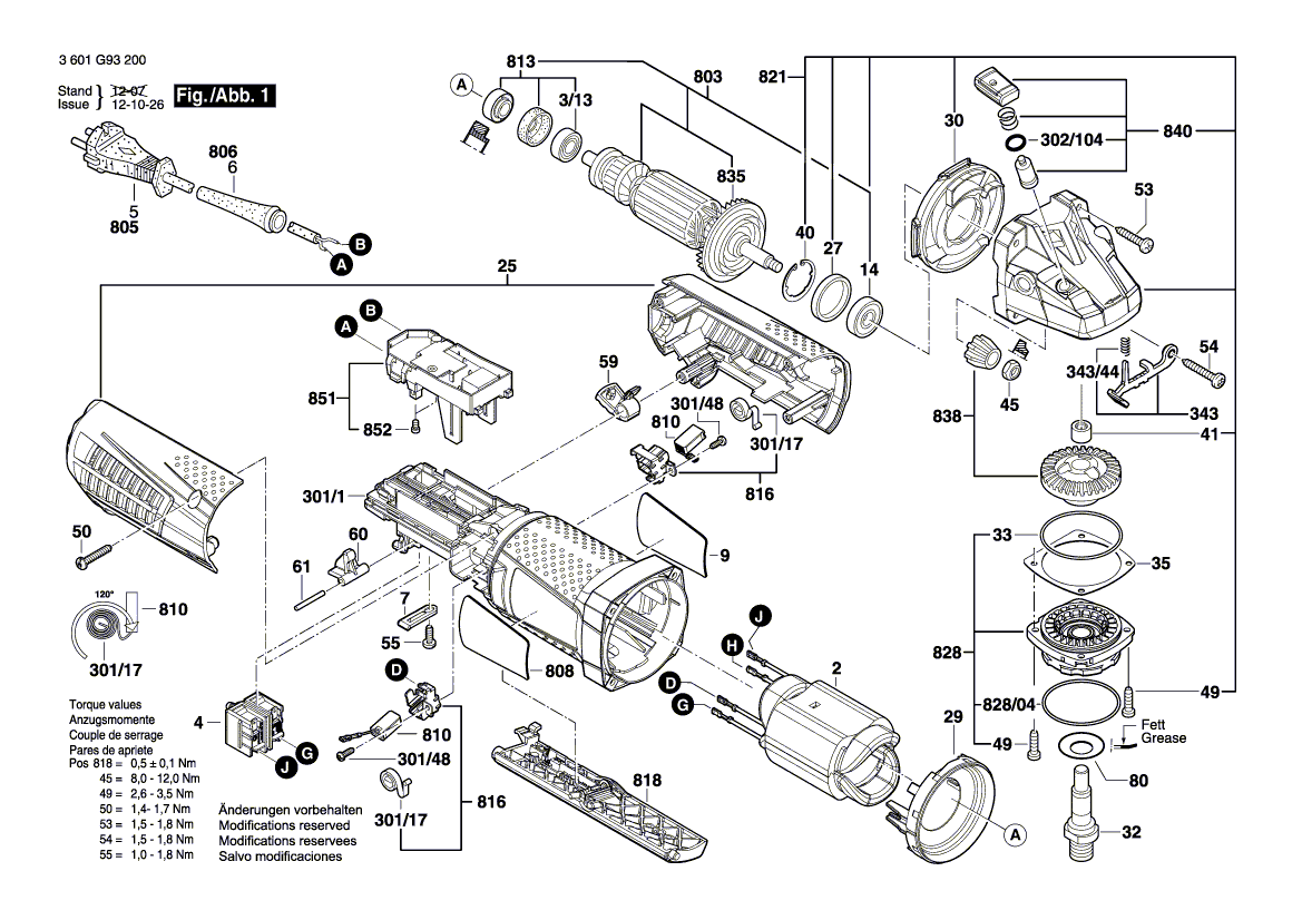 Ersatzteile von Bosch Winkelschleifer GWS 12-125 CIP (3 601 G93 200):