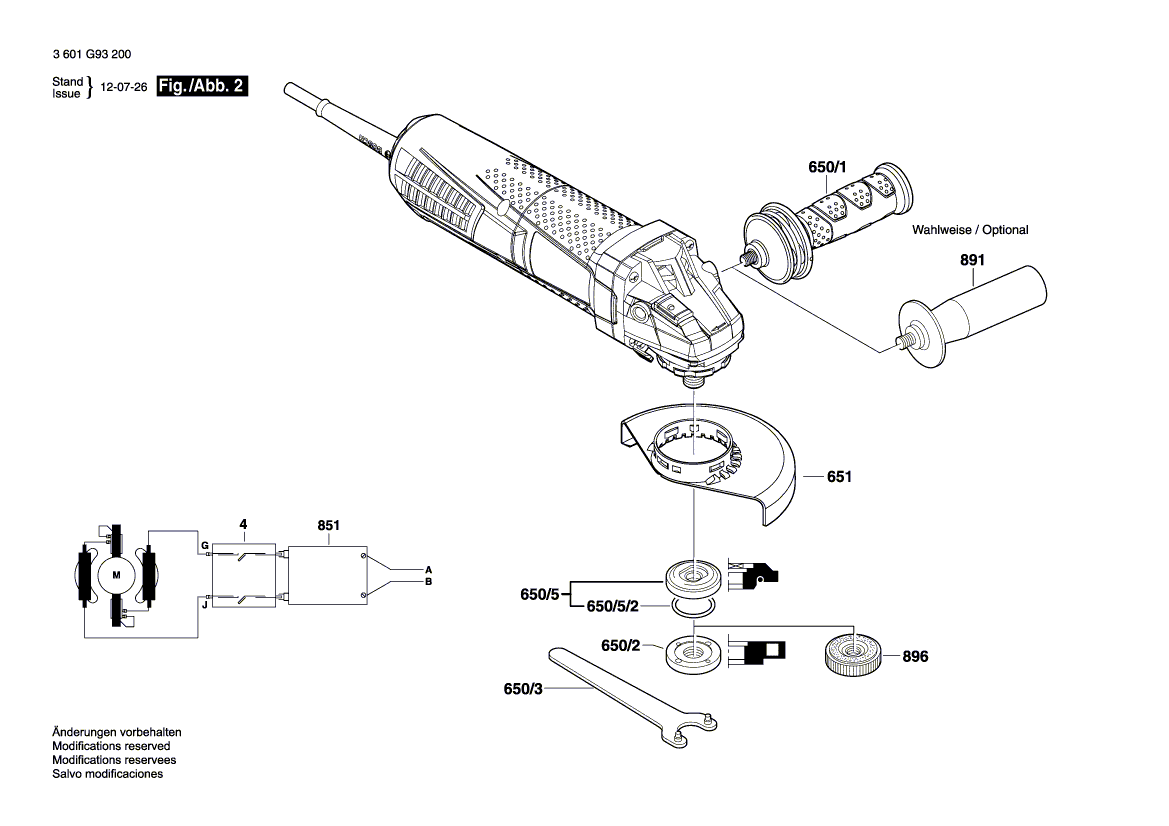Zeichnungen von Bosch Winkelschleifer GWS 12-125 CIP mit der Geräte-Artikelnummer 3 601 G93 200