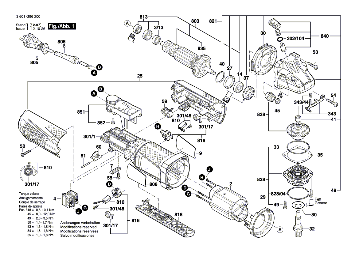 Ersatzteile von Bosch Winkelschleifer GWS 15-125 CIEP (3 601 G96 200):