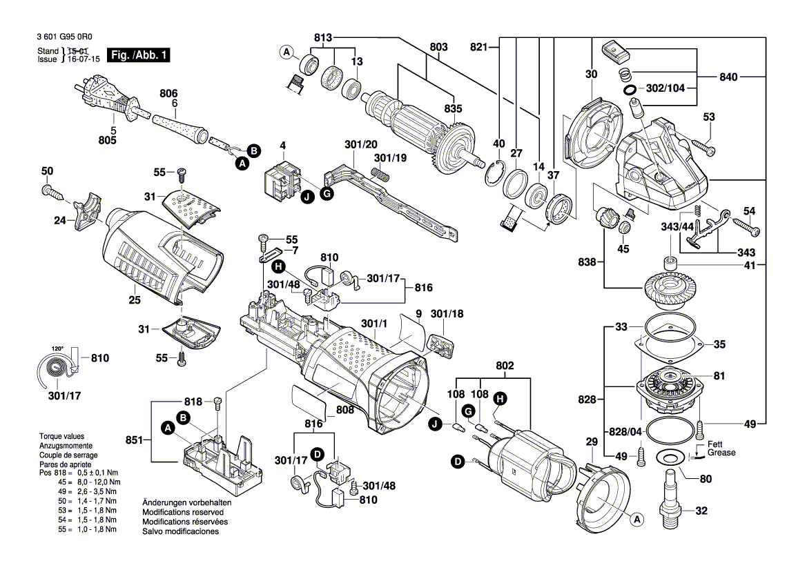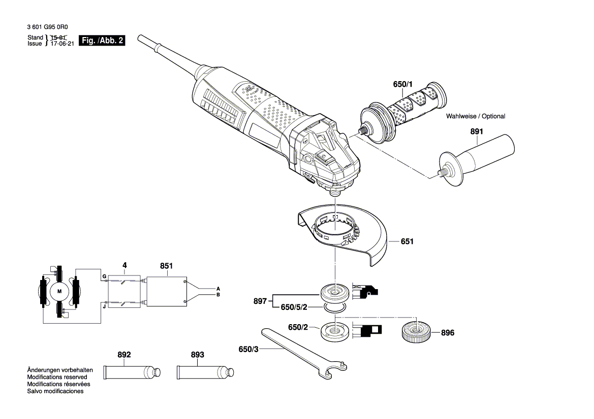 Zeichnungen von Bosch Winkelschleifer GWS 17-150 CI mit der Geräte-Artikelnummer 3 601 G98 0R0