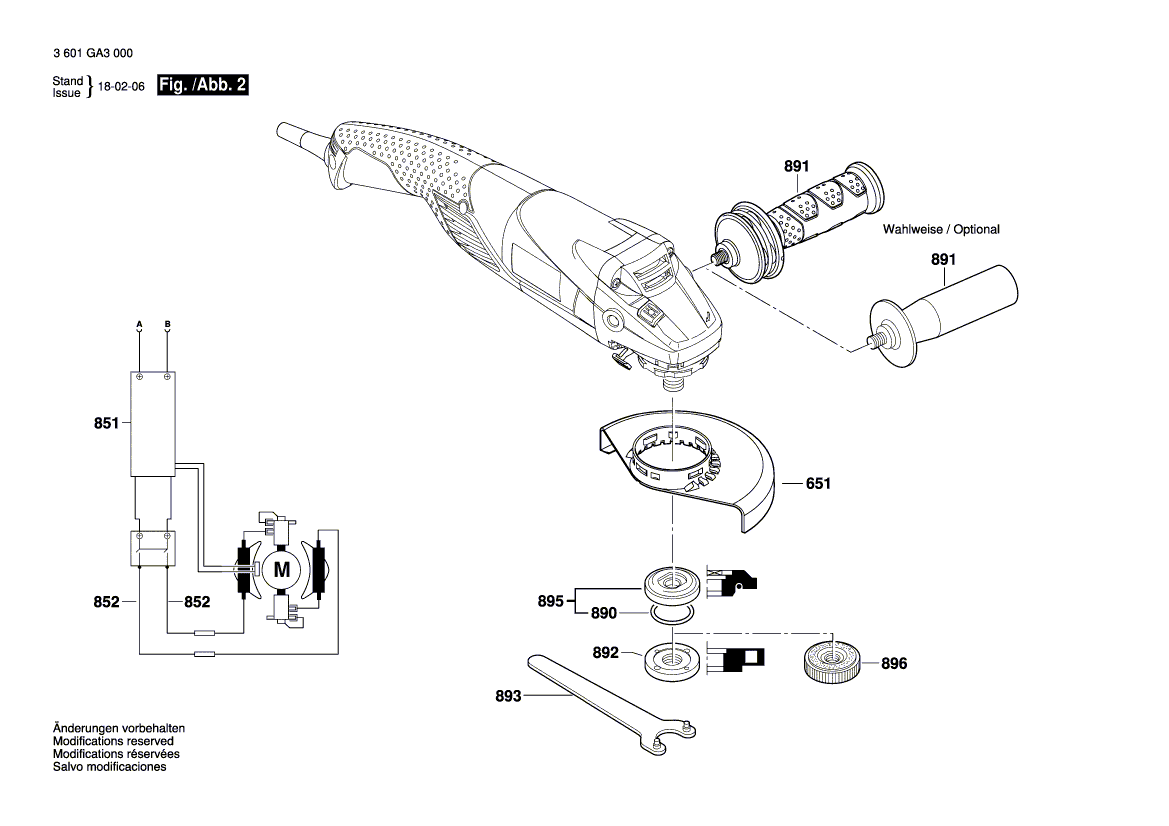 Zeichnungen von Bosch Winkelschleifer GWS 18-125 PL mit der Geräte-Artikelnummer 3 601 GA3 100
