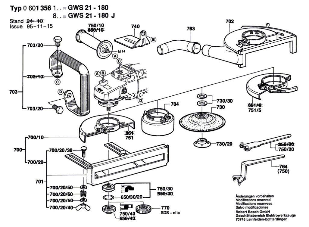 Zeichnung Bosch Winkelschleifer GWS 21-180 0 601 356 150: