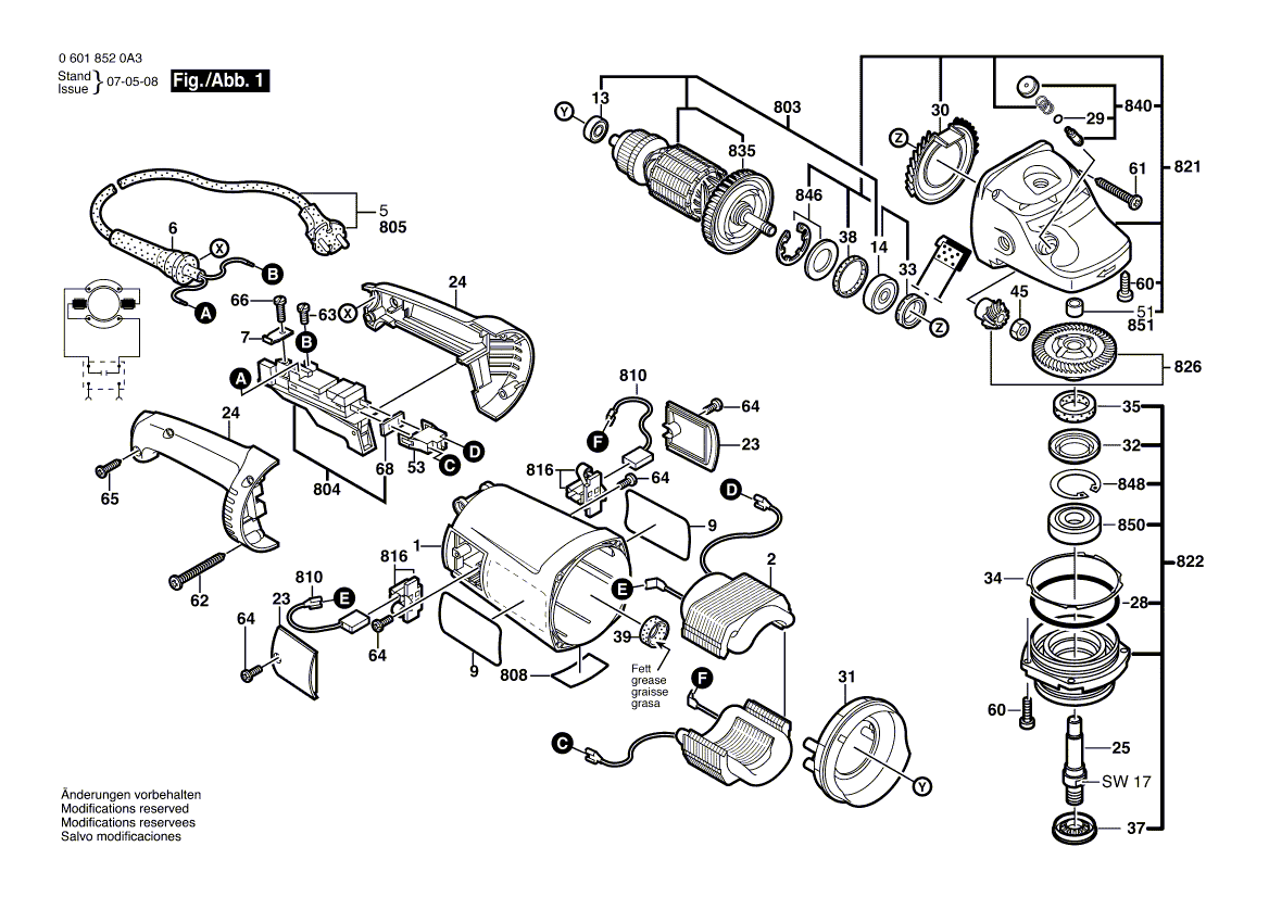 Beachten Sie bitte, dass Ihre Geräte Nr. 0 601 852 0A3 lauten muss. Nur so kann sichergestellt werden, dass das Ersatzteil passt. Sollten Sie Fragen zu einem Ersatzteil haben, können Sie uns gerne eine Mail (mit Bild vom Geräte-Typenschild) schreiben oder eine Ersatzteilanfrage stellen. Ersatzteile von Bosch Winkelschleifer GWS 21-230 H (0 601 852 0A3):