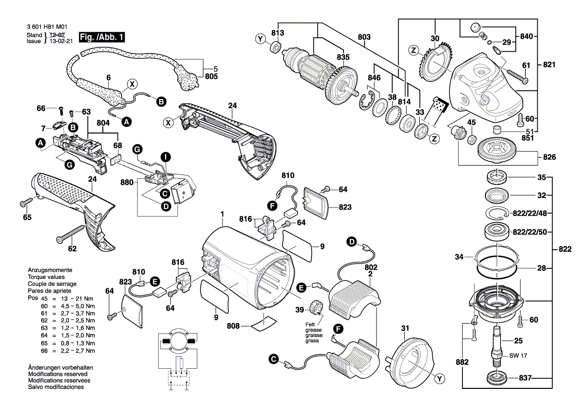 Beachten Sie bitte, dass Ihre Geräte Nr. 3 601 H81 M01 lauten muss. Nur so kann sichergestellt werden, dass das Ersatzteil passt. Sollten Sie Fragen zu einem Ersatzteil haben, können Sie uns gerne eine Mail (mit Bild vom Geräte-Typenschild) schreiben oder eine Ersatzteilanfrage stellen. Ersatzteile von Bosch Winkelschleifer GWS 22-180 JH (3 601 H81 M01):