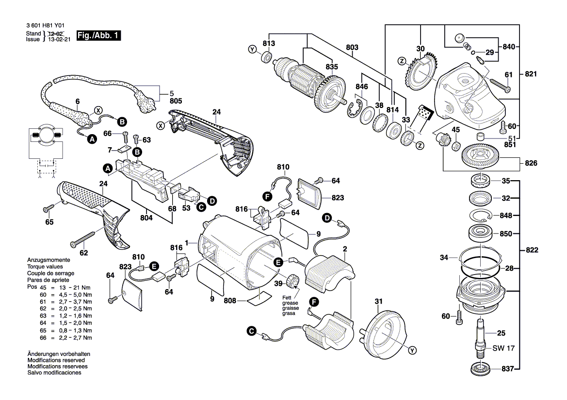 Beachten Sie bitte, dass Ihre Geräte Nr. 3 601 H82 X01 lauten muss. Nur so kann sichergestellt werden, dass das Ersatzteil passt. Sollten Sie Fragen zu einem Ersatzteil haben, können Sie uns gerne eine Mail (mit Bild vom Geräte-Typenschild) schreiben oder eine Ersatzteilanfrage stellen. Ersatzteile von Bosch Winkelschleifer GWS 22-230 H (3 601 H82 X01):
