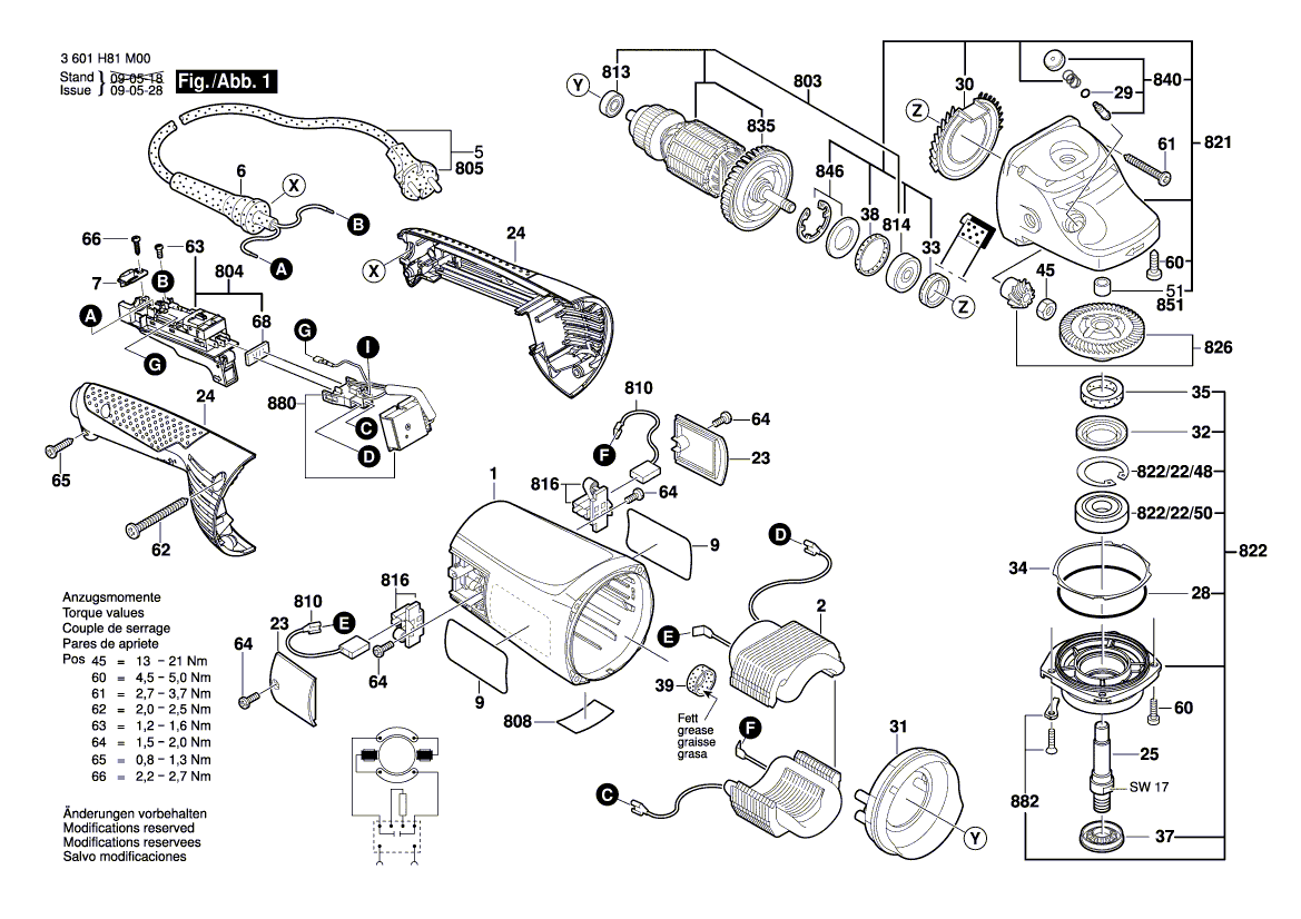 Zeichnungen von Bosch Winkelschleifer GWS 22-230 JH mit der Geräte-Artikelnummer 3 601 H82 M00