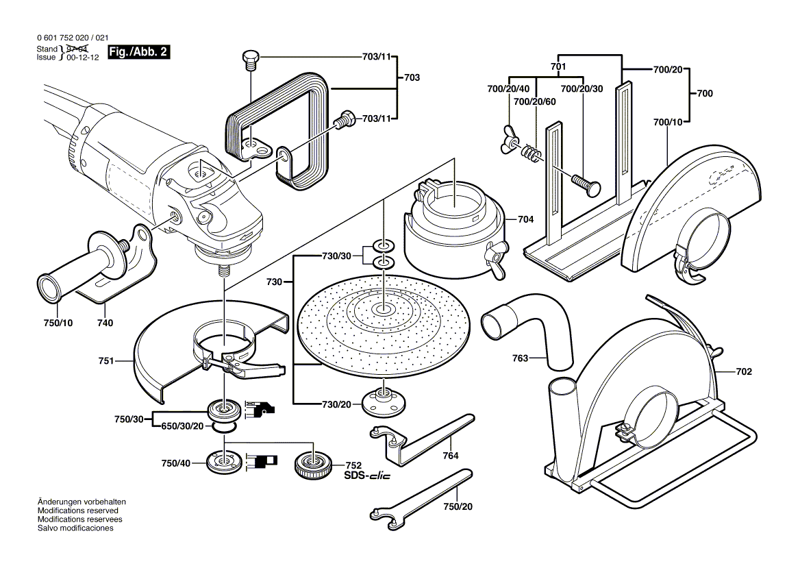 Zeichnungen von Bosch Winkelschleifer GWS 230 mit der Geräte-Artikelnummer 0 601 752 020
