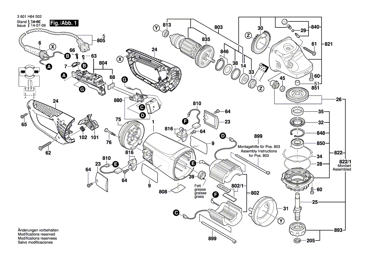 Zeichnungen von Bosch Winkelschleifer GWS 24-230 JVX mit der Geräte-Artikelnummer 3 601 H64 Z02