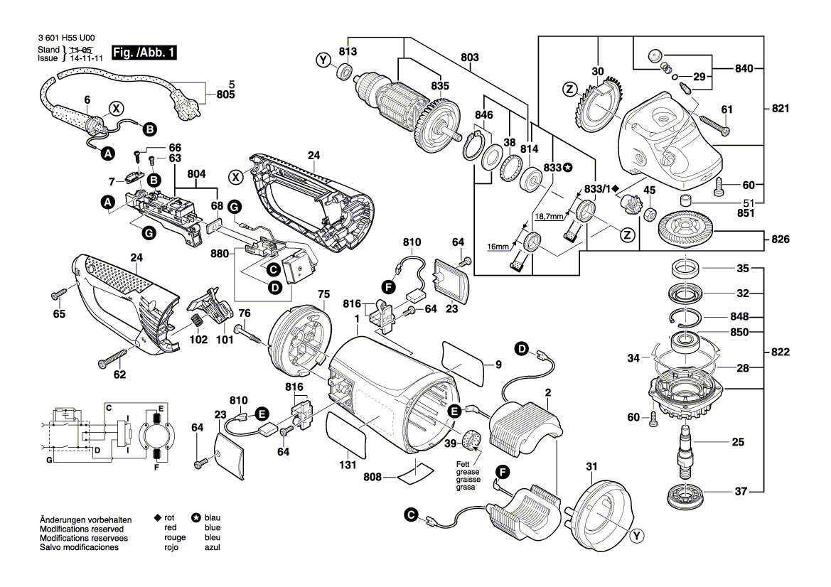 Zeichnungen von Bosch Winkelschleifer GWS 26-180 JBV mit der Geräte-Artikelnummer 3 601 H55 U00