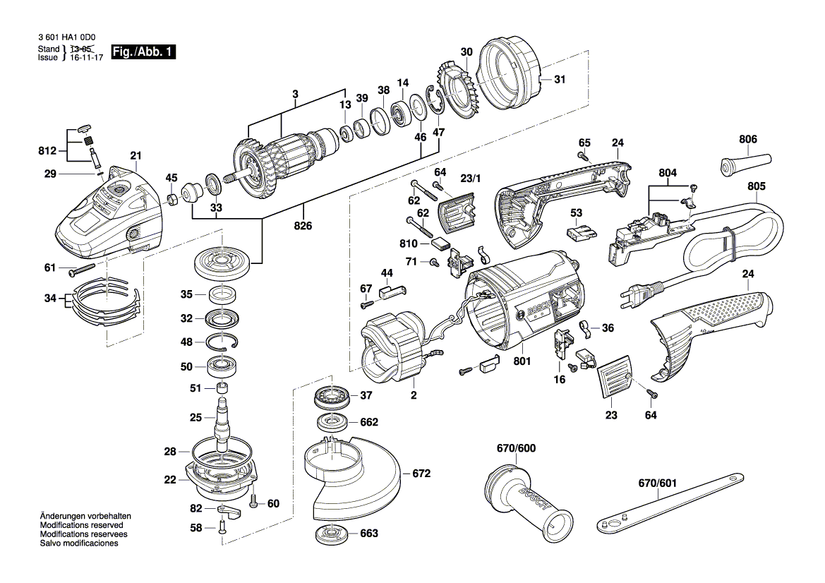 Zeichnungen von Bosch Winkelschleifer GWS 26-230 mit der Geräte-Artikelnummer 3 601 HA6 0K0