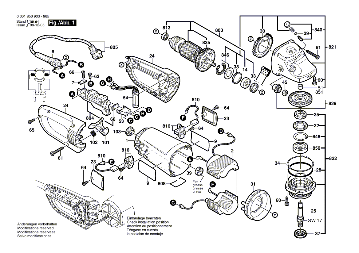 Beachten Sie bitte, dass Ihre Geräte Nr. 0 601 856 903 lauten muss. Nur so kann sichergestellt werden, dass das Ersatzteil passt. Sollten Sie Fragen zu einem Ersatzteil haben, können Sie uns gerne eine Mail (mit Bild vom Geräte-Typenschild) schreiben oder eine Ersatzteilanfrage stellen. Ersatzteile von Bosch Winkelschleifer GWS 26-230 JB (0 601 856 903):