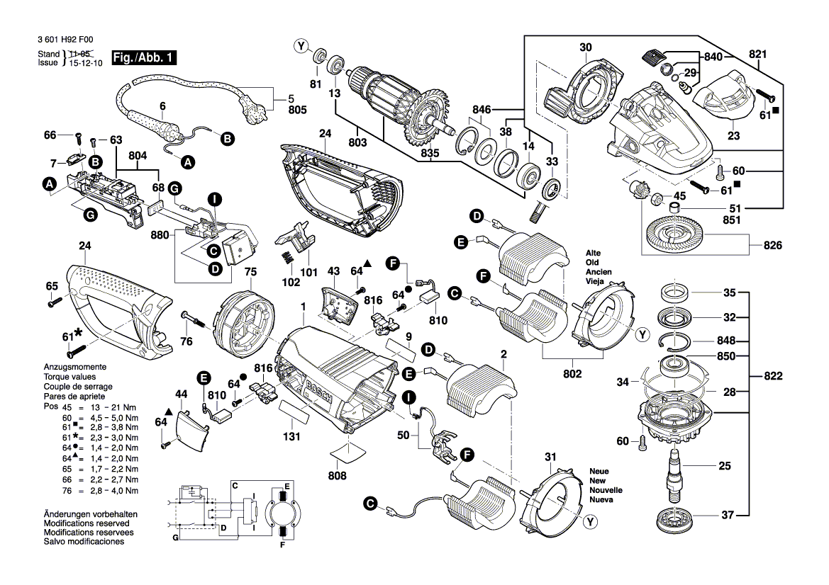Zeichnungen von Bosch Winkelschleifer GWS 26-230 LVI mit der Geräte-Artikelnummer 3 601 H95 F00