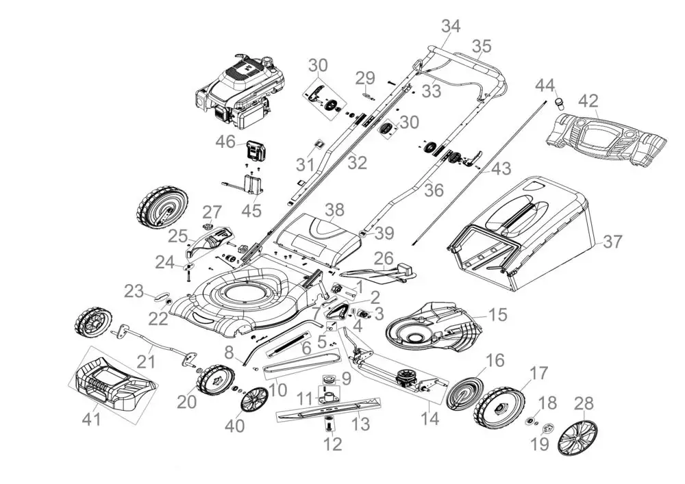 Zeichnung Sollten Sie Fragen zu einem Ersatzteil vom Powertec Garden Benzin Rasenmäher BW 56 ES (Art-Nr. 05199) haben, können Sie uns gerne eine E-Mail (mit einem Foto vom Typenschild Ihres Gerätes) schreiben oder eine Ersatzteilanfrage stellen.