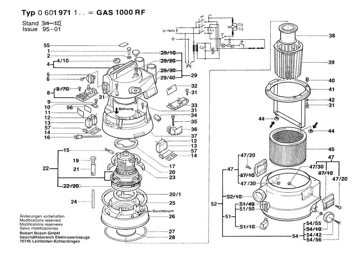 Ersatzteile für Bosch Allzwecksauger ALL PURPOSE VACCUUM | 220 V | 032 - DK (0 601 971 160) Zeichnung 1