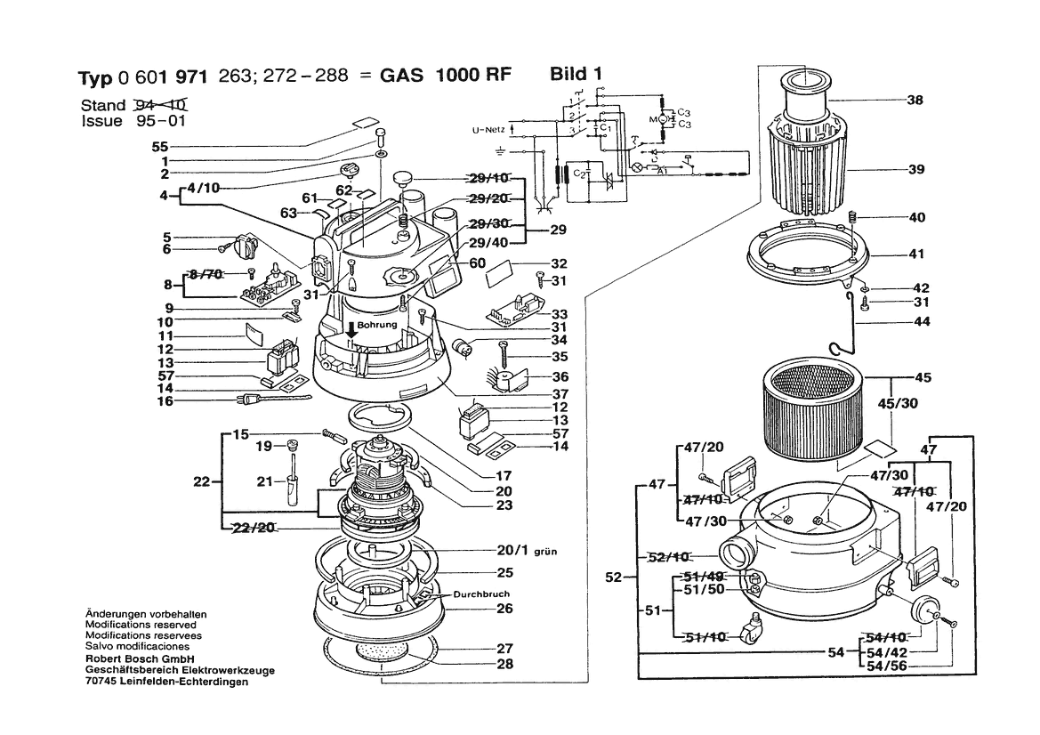 Ersatzteile für Bosch Allzwecksauger GAS 1000 RF BI | 240 V | 027 - AU (0 601 971 277) Zeichnung 1