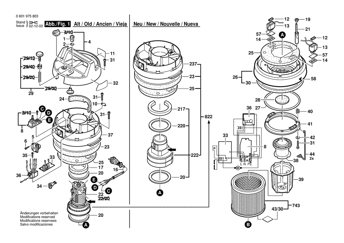 Folgende Ersatzteile für Bosch Allzwecksauger NO DESCRIPTION | 230 V | 004 - CH (0 601 975 832) können Sie hier bestellen: