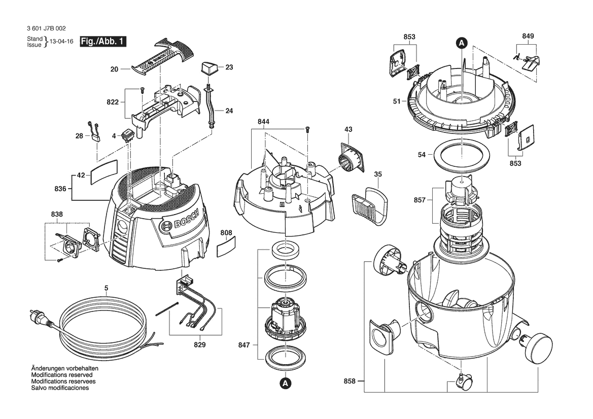 Ersatzteile für Bosch Allzwecksauger GAS 15 L (3 601 J7B 1B0) Zeichnung 1