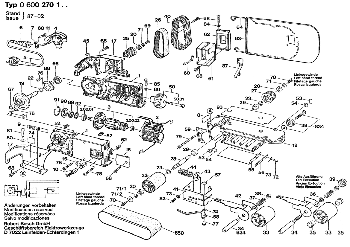 Folgende Ersatzteile für Bosch Bandschleifer 0270.1 | 110 V | 052 - RO (0 600 270 147) können Sie hier bestellen:
