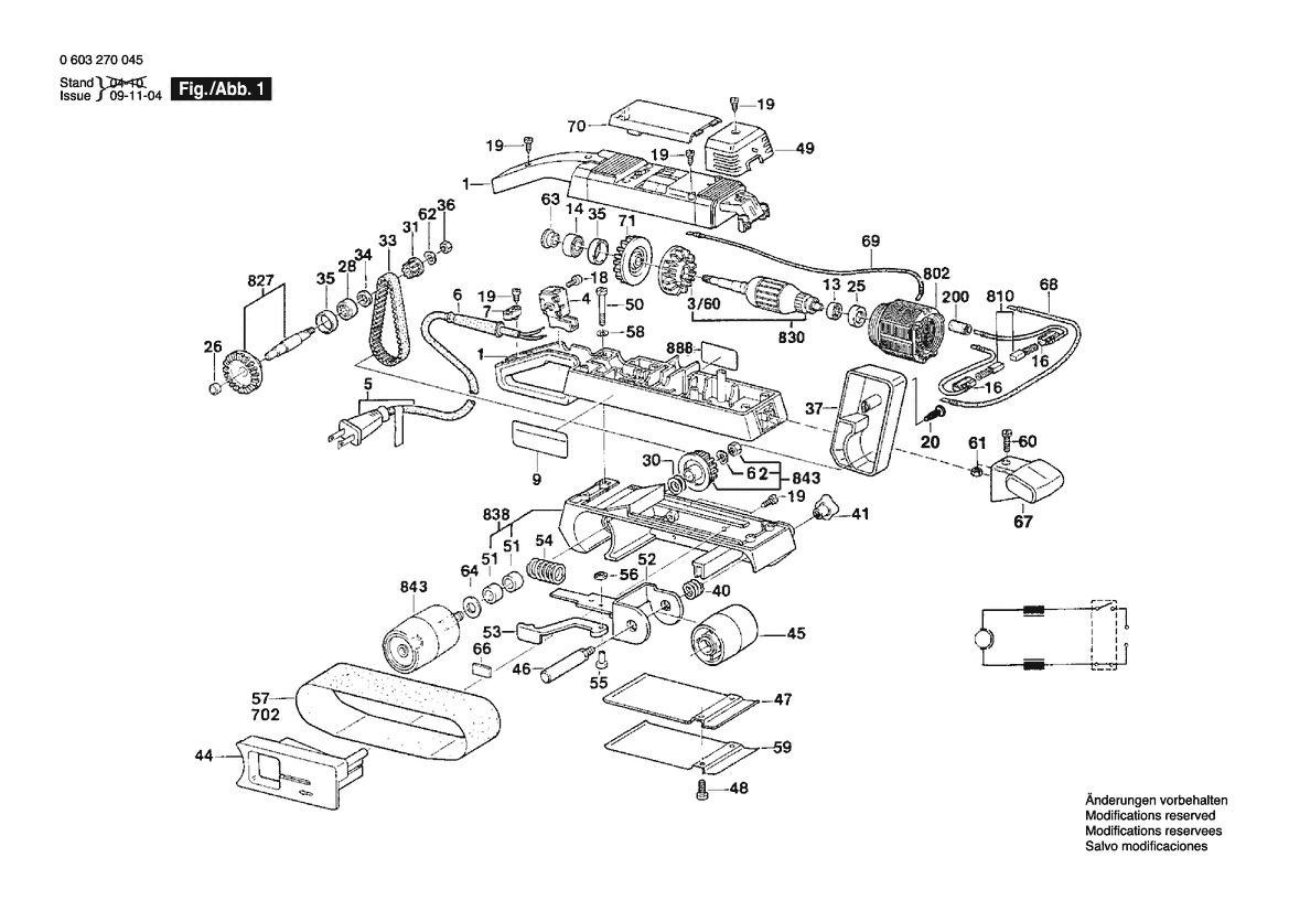 Zeichnung Sollten Sie Fragen zu einem Ersatzteil vom Bosch Bandschleifer PBS 75 | 115 V | 030 - CA (0 603 270 045) haben, können Sie uns gerne eine E-Mail (mit einem Foto vom Typenschild Ihres Gerätes) schreiben oder eine Ersatzteilanfrage stellen.