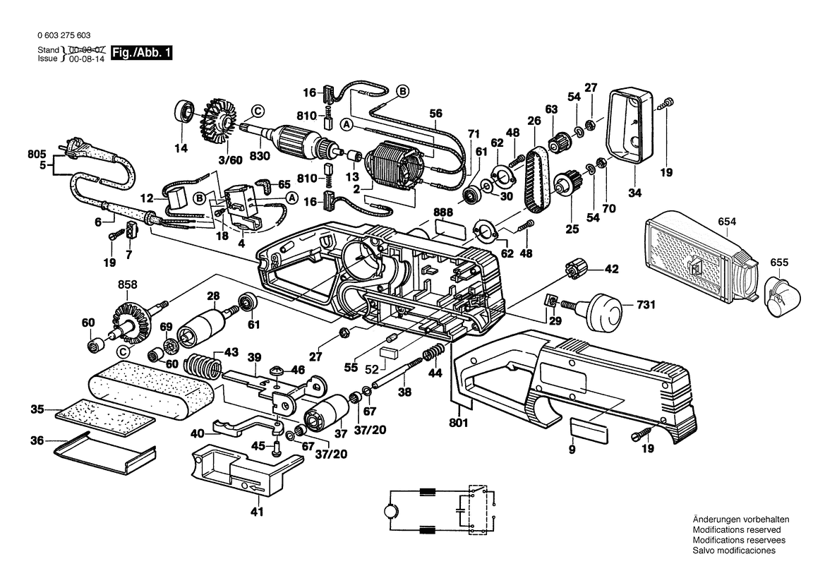 Zeichnung Sollten Sie Fragen zu einem Ersatzteil vom Bosch Bandschleifer PBS 60 E | 230 V | 004 - CH (0 603 275 632) haben, können Sie uns gerne eine E-Mail (mit einem Foto vom Typenschild Ihres Gerätes) schreiben oder eine Ersatzteilanfrage stellen.