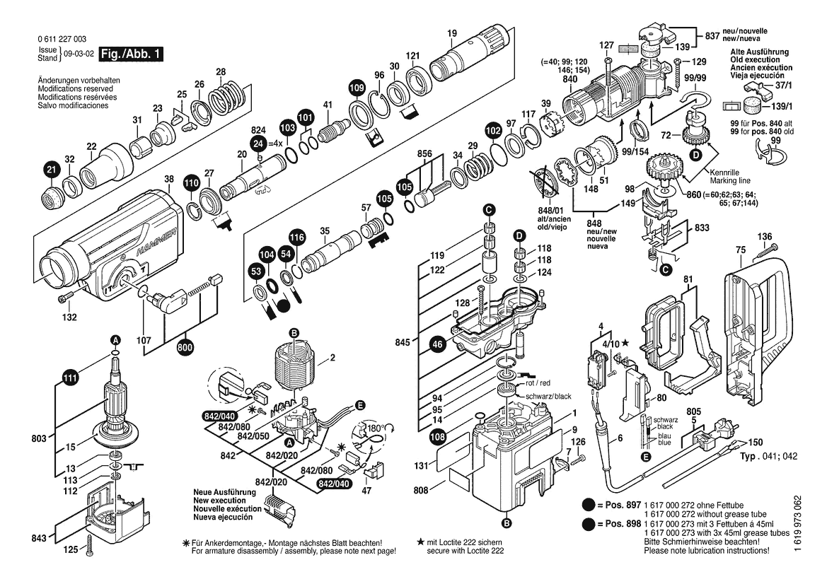 Ersatzteile für Bosch Bohrhammer ROTARY HAMMER | 220 V | 011 - KR (0 611 227 040) Zeichnung 1