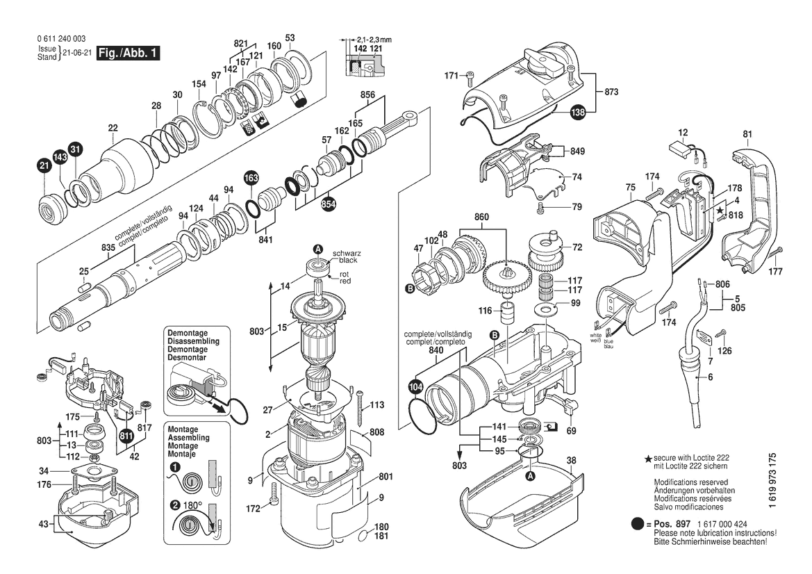 Ersatzteile für Bosch Bohrhammer GBH 5-38 D | 230 V | 004 - CH (0 611 240 066) Zeichnung 1