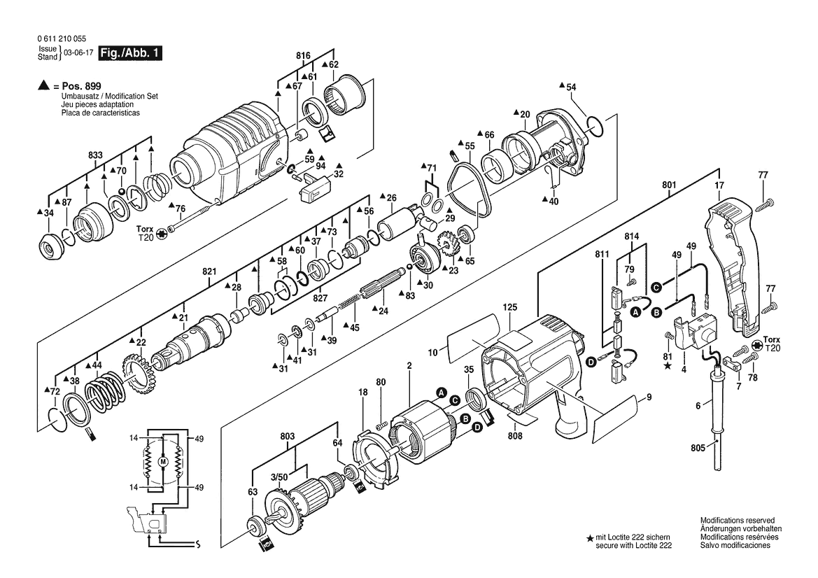 Zeichnung Sollten Sie Fragen zu einem Ersatzteil vom Bosch Bohrhammer GW-BOHRHAMMER | 230 V | 041 - IN (0 611 210 055) haben, können Sie uns gerne eine E-Mail (mit einem Foto vom Typenschild Ihres Gerätes) schreiben oder eine Ersatzteilanfrage stellen.