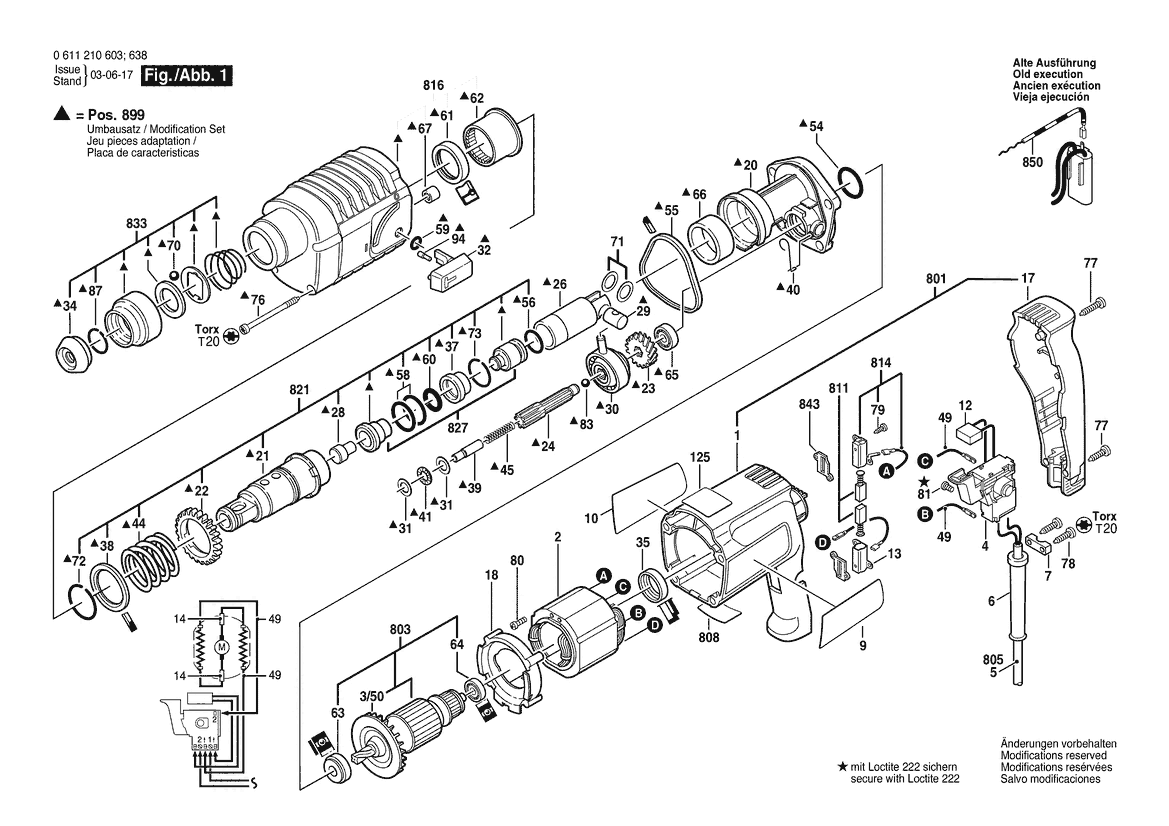 Ersatzteile für Bosch Bohrhammer UBH 2/20 SE | 240 V | 020 - MY (0 611 210 606) Zeichnung 1