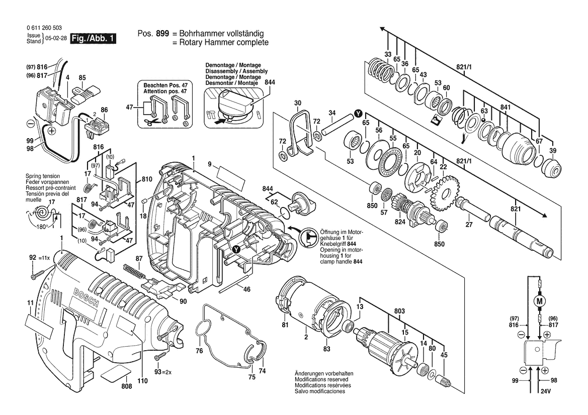 Ersatzteile für Bosch Gw-Akku-Bohrhammer GBH 24 VRE | 24 V | 036 - GB (0 611 260 542) Zeichnung 1