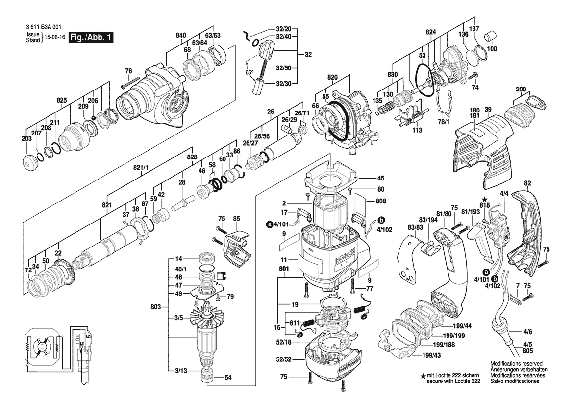Ersatzteile für Bosch Bohrhammer GBH 3-28 DRE | 220 V (3 611 B3A 0E1) Zeichnung 1