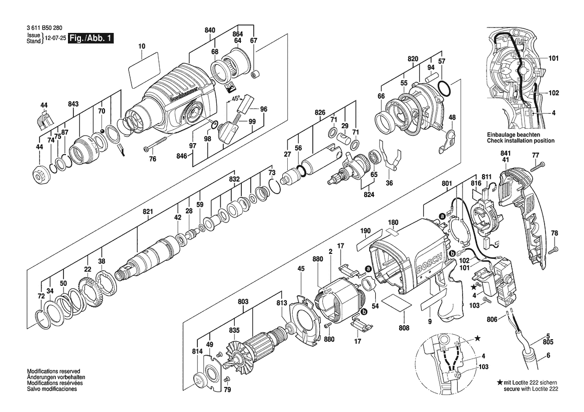 Zeichnung Sollten Sie Fragen zu einem Ersatzteil vom Bosch Bohrhammer GBH 2-23 E | 240 V | 020 - MY (3 611 B50 8L0) haben, können Sie uns gerne eine E-Mail (mit einem Foto vom Typenschild Ihres Gerätes) schreiben oder eine Ersatzteilanfrage stellen.