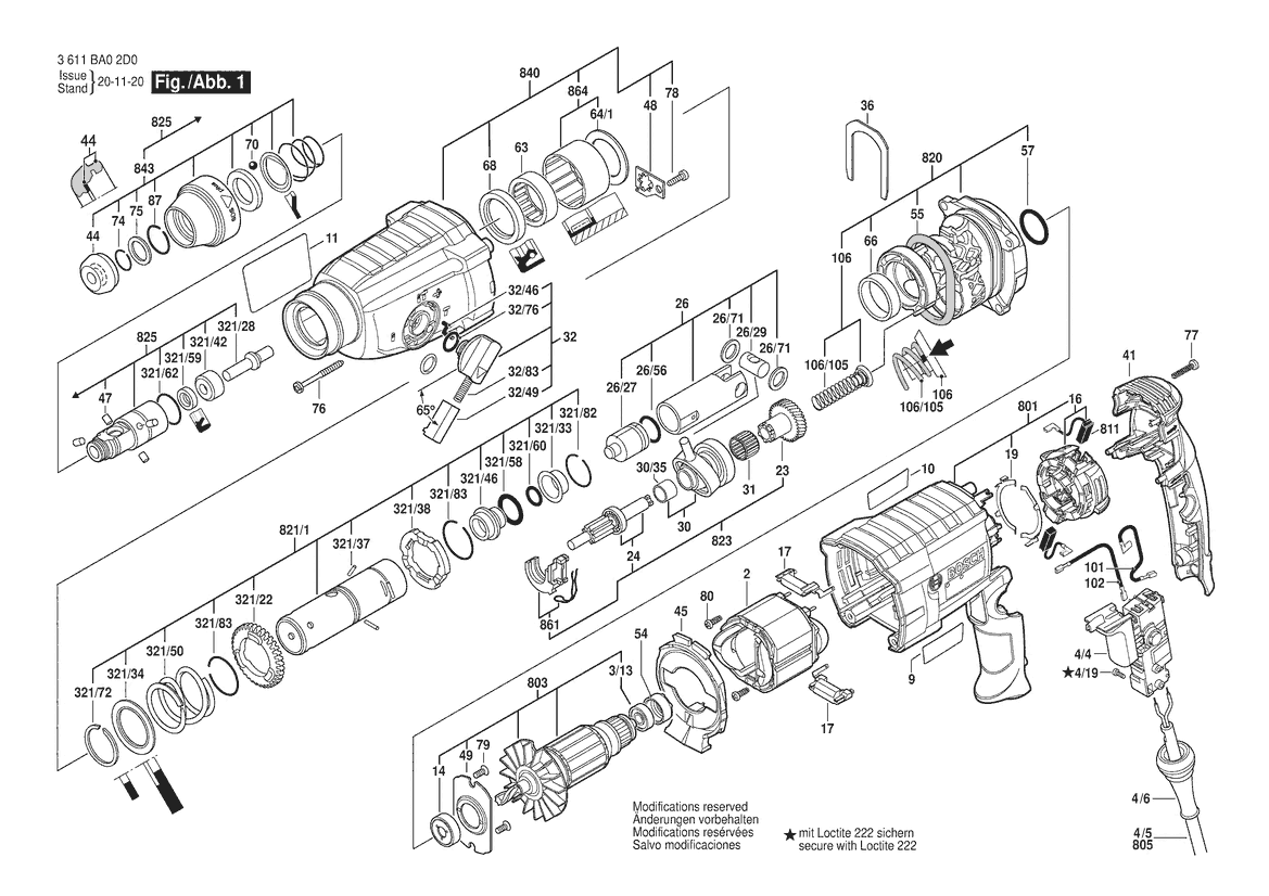 Zeichnung Sollten Sie Fragen zu einem Ersatzteil vom Bosch Bohrhammer GBH 2-24D | 127 V | 025 - AMS (3 611 BA0 0G1) haben, können Sie uns gerne eine E-Mail (mit einem Foto vom Typenschild Ihres Gerätes) schreiben oder eine Ersatzteilanfrage stellen.