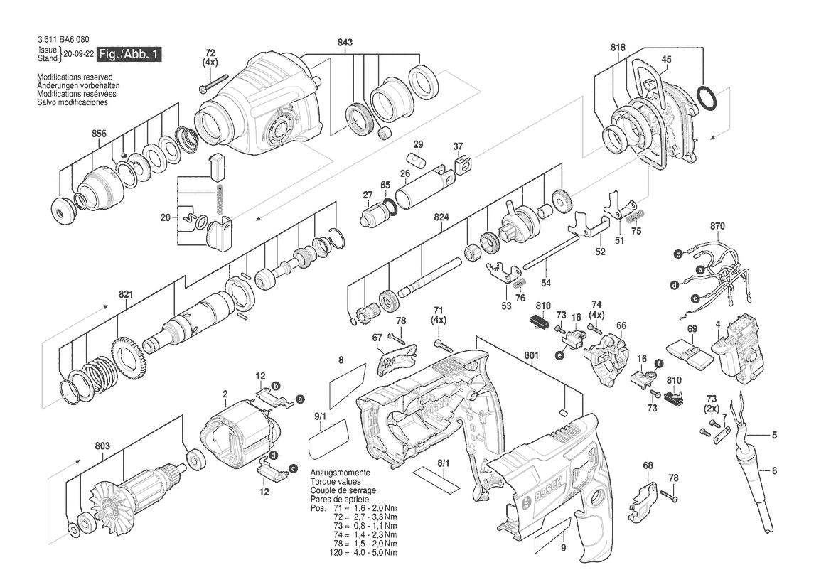 Ersatzteile für Bosch Bohrhammer GBH 220 | 230 V | 003 - EEU (3 611 BA6 020) Zeichnung 1