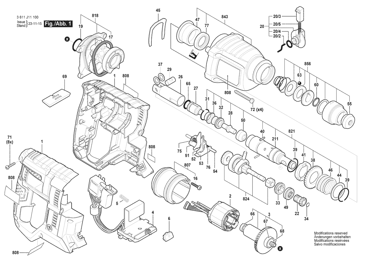Zeichnung Sollten Sie Fragen zu einem Ersatzteil vom Bosch Akku-Bohrhammer GBH 180-LI | 18 V | 025 - AMS (3 611 J11 1E0) haben, können Sie uns gerne eine E-Mail (mit einem Foto vom Typenschild Ihres Gerätes) schreiben oder eine Ersatzteilanfrage stellen.