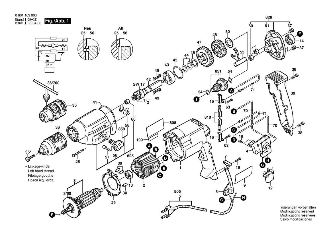 Folgende Ersatzteile für Bosch Zweigang-Bohrmaschine GBM 13-2 | 230 V | 041 - IN (0 601 169 0X0) können Sie hier bestellen:
