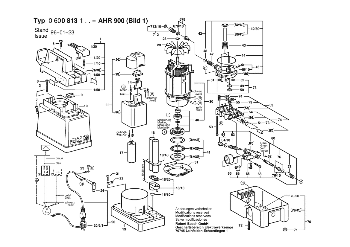 Ersatzteile für Bosch Hochdruckreiniger AHR 900 | 230 V | 001 - EU (0 600 813 164) Zeichnung 1