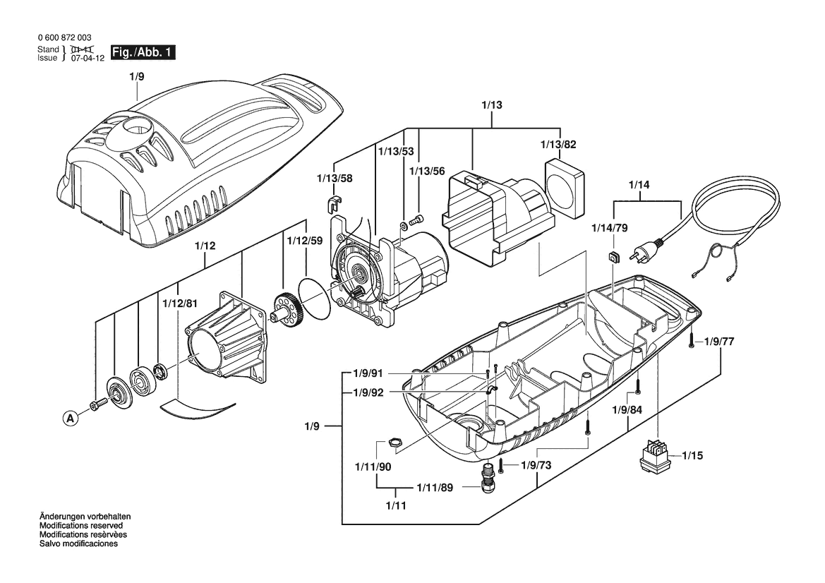 Ersatzteile für Bosch Hochdruckreiniger AQUATAK 100 | 240 V | 020 - MY (0 600 872 006) Zeichnung 1