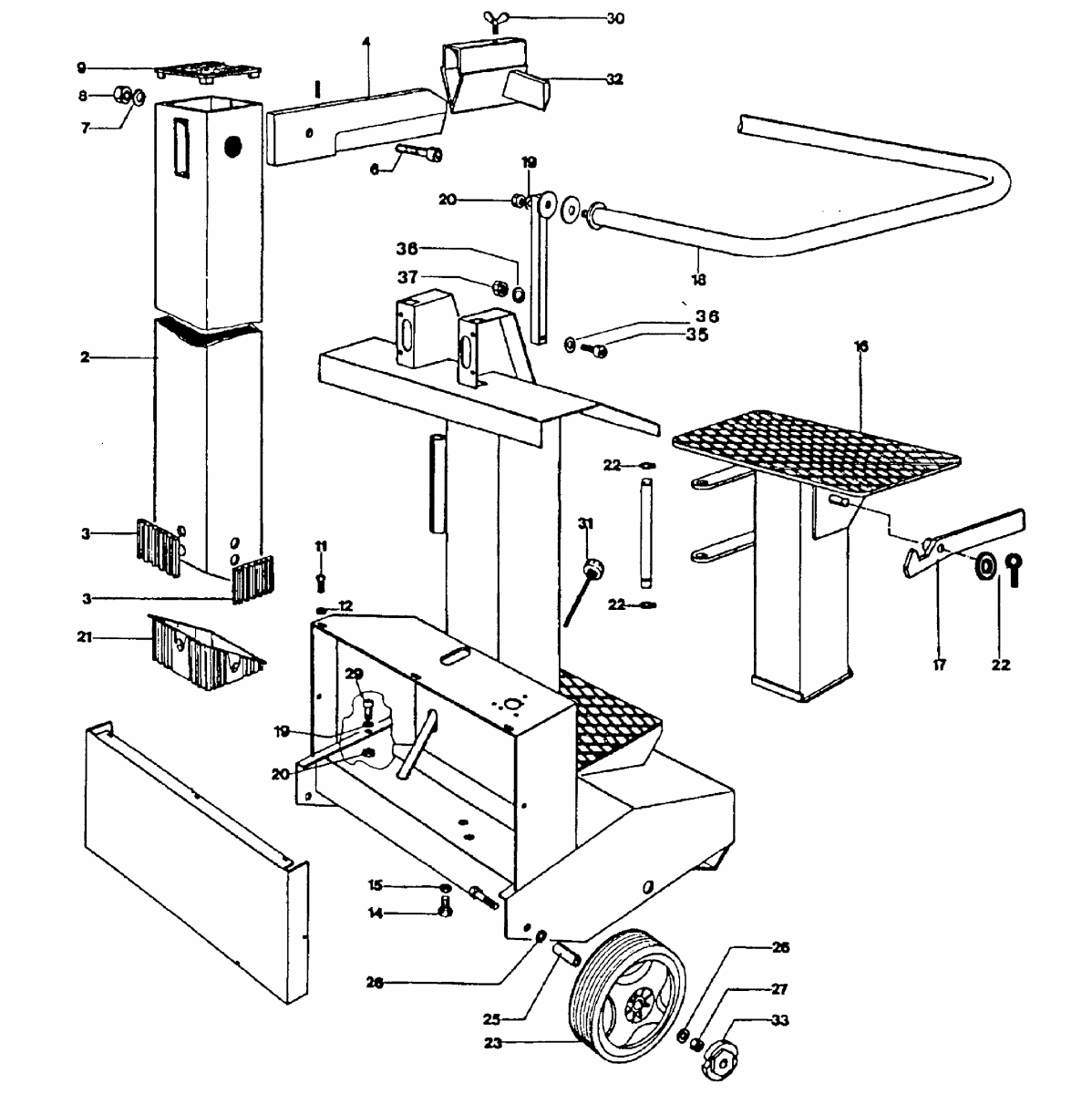 Zeichnung 1 Sollten Sie Fragen zu einem Ersatzteil von Metabo SD 61000 - HYDRAULISCHER HOLZSPALTER 61001438210 haben, können Sie uns gerne eine E-Mail (mit einem Foto vom Typenschild Ihres Gerätes) schreiben oder eine Ersatzteilanfrage stellen.