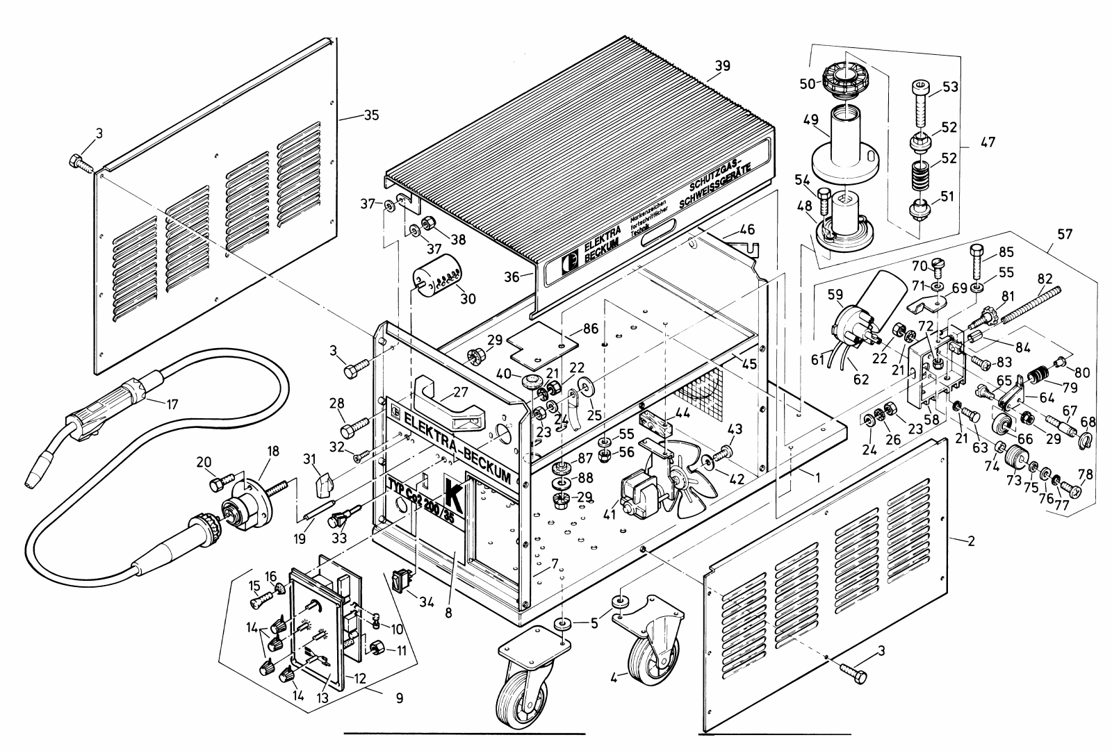 Zeichnung 1 Sollten Sie Fragen zu einem Ersatzteil von Metabo 20035 ET - SCHWEIßGERÄT MIGMAG 621 62103201810 haben, können Sie uns gerne eine E-Mail (mit einem Foto vom Typenschild Ihres Gerätes) schreiben oder eine Ersatzteilanfrage stellen.