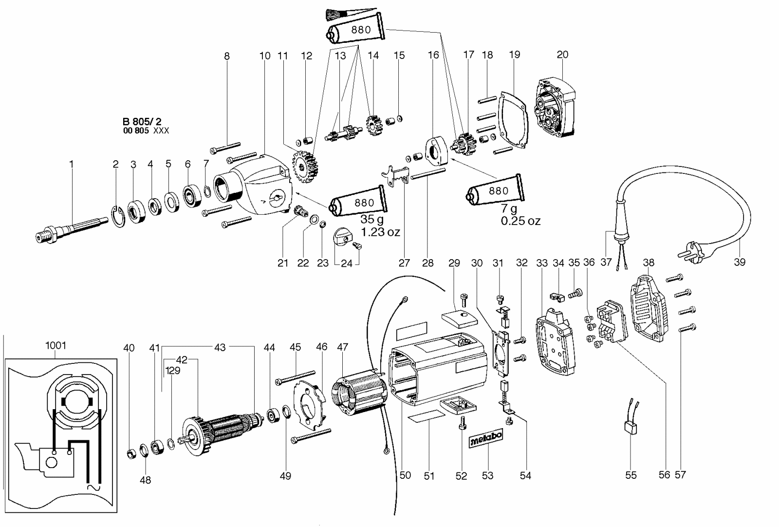 Zeichnung 1 Sollten Sie Fragen zu einem Ersatzteil von Metabo MAG 832 Bohrmaschine 600832191 haben, können Sie uns gerne eine E-Mail (mit einem Foto vom Typenschild Ihres Gerätes) schreiben oder eine Ersatzteilanfrage stellen.