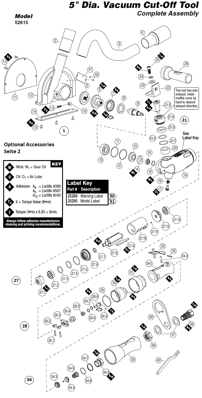 Folgende Ersatzteile für Dynabrade 52615 - 5 Dia Vaccum Cut-Off Tool - Schneidem können Sie hier bestellen: