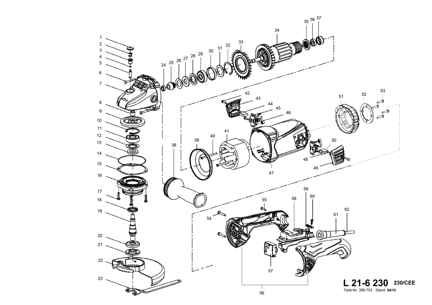 Ersatzteile für Flex L 21-6 230 - 2100 Watt Zweihand-Winkelschleifer 391514