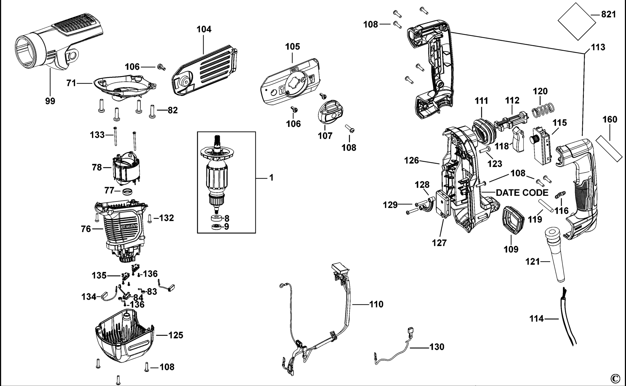 Ersatzteile für DeWalt D25811-LX TYPE 1 MEISSELHAMMER D25811-LX D25811