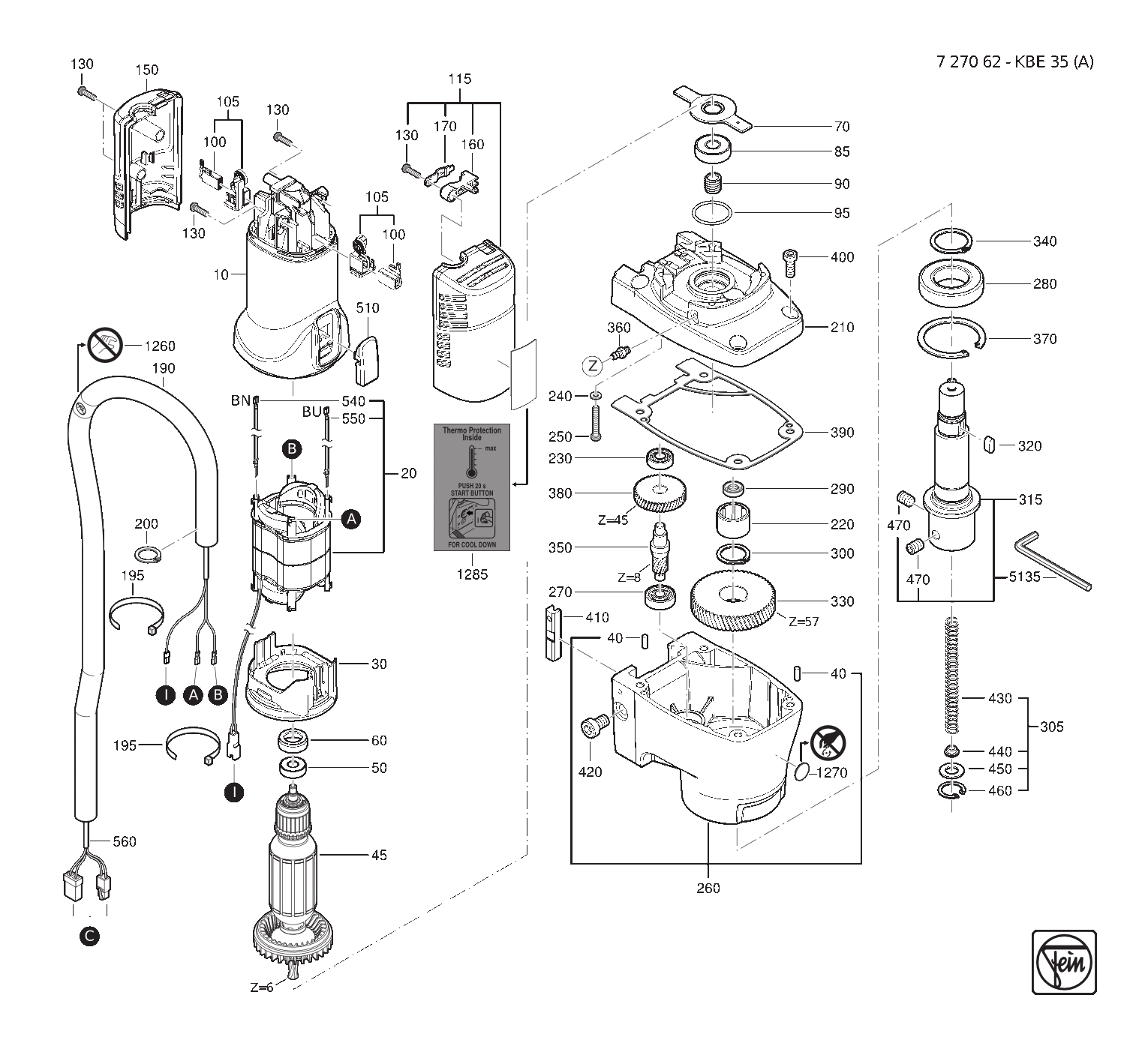Folgende Ersatzteile für Fein KBE35A 72706200230 können Sie hier bestellen: